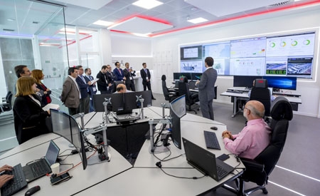 En el segmento industrial, el nuevo centro presentará servicios de ABB AbilityTM que complementan las tecnologías de ABB para la automatización de terminales de distribución de hidrocarburos. Estas tecnologías están instaladas actualmente en más de 45 terminales de distribución en España, permitiendo a clientes de la industria del petróleo y gas controlar por completo el movimiento diario de hasta 4.500 camiones o 125 millones de litros de productos de hidrocarburos, y mejorando la seguridad de todo el proceso, desde la identificación y el acceso de los conductores de camiones a los terminales de distribución hasta el llenado preciso de los camiones con la combinación de productos demandada por cada cliente final, permitiendo así mayor flexibilidad en el servicio de nuestros clientes a sus mercados. Todo este proceso será respaldado desde el nuevo centro mediante acuerdos de monitorización remota que permitirán a nuestros expertos colaborar estrechamente con nuestros clientes en tareas como la monitorización y la mejora constante del rendimiento del sistema de automatización, analizar datos para el mantenimiento predictivo de los activos o supervisar una gestión de alarmas que mejore la fiabilidad de los procesos.