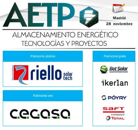 AETP vuelve a contar con el apoyo de empresas de reconocido prestigio, que ya han confirmado su presencia como ponentes y patrocinadores en el evento, entre ellas, la Asociación de Empresas de Energía Eléctrica (AELEC), la Asociación Española de Normalización (UNE), Bet Solar, Cegasa, Ikerlan, el Instituto IMDEA Energía, la consultora Pöyry, Riello Solar Tech y Saft.