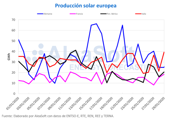 La producción de este mes de enero de 2020, hasta el miércoles 29 de enero, aumentó en todos los mercados europeos respecto al mismo período del año pasado. Las subidas más importantes se produjeron en Alemania e Italia, con incrementos del 55% y 19% respectivamente.