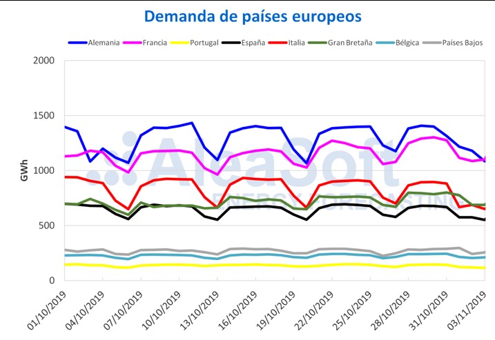 La demanda eléctrica en el mes recién concluido bajó un 6,2% en Alemania. En Portugal aumentó un 0,9%, y un 0,8% en Reino Unido. De forma general, en la mayoría de los territorios del continente europeo analizados, la demanda eléctrica mensual de 2019 ha estado por debajo de los niveles del año pasado en el mismo período.