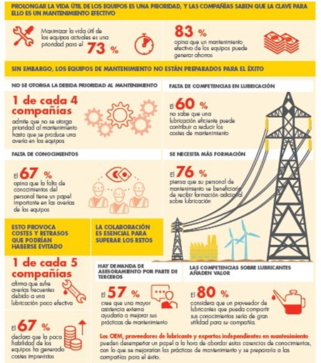 Entre los factores que influyen en el mantenimiento ineficiente de equipos, el estudio revela que el 37% de los equipos de mantenimiento está sometido a la presión de reducir costes y un 36% de las empresas reconoce que el número de empleados dedicados al mantenimiento de sus equipos es insuficiente. A esto hay que sumar que el 21% de las compañías energéticas afirma que la lubricación no suele ser una tarea de mantenimiento prioritaria.