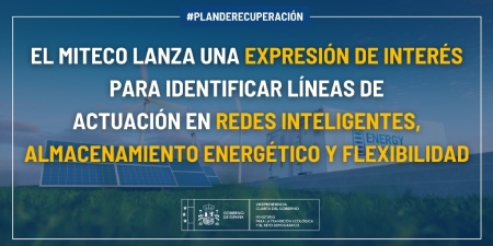 El Ministerio para la Transición Ecológica y el Reto Demográfico (MITECO) lanzó el pasado viernes 29 de enero, una convocatoria de expresiones de interés con el objetivo de identificar proyectos e iniciativas que contribuyan a mejorar la flexibilidad del sistema energético de forma competitiva y sostenible, así como a dar apoyo y mejorar la integración de la generación renovable prevista en los próximos años, en el marco del diseño de líneas de actuación del Plan de Recuperación, Transformación y Resiliencia.