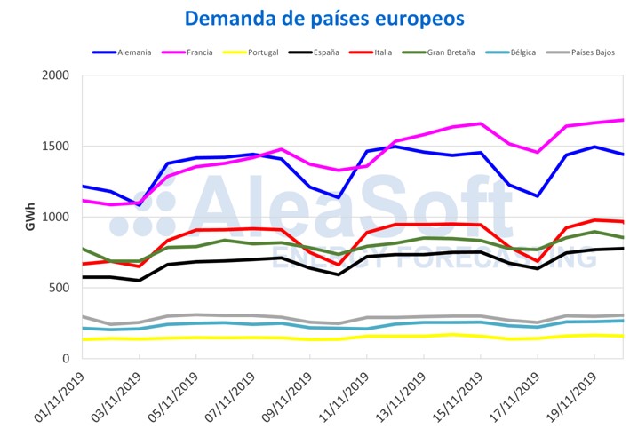 La semana próxima del 25 de noviembre se espera que las temperaturas medias suban en todos los países europeos analizados, excepto en Italia. En este caso, la demanda tendrá un comportamiento contrario al de la semana actual: bajadas en todos los mercados excepto en Alemania e Italia.