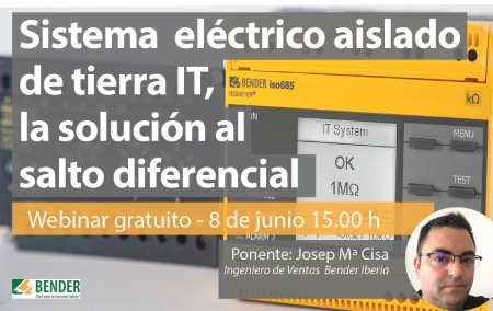 Dentro de su programa de webinars para el año 2021, Bender Iberia, ofrecerá el próximo 8 de junio a las 15.00h un webinar dedicado al "Sistema eléctrico aislado IT, la solución al salto del diferencial".