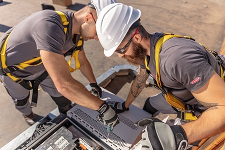 El inversor puede montarse en vertical, colgado, o en horizontal, en el suelo. Estos inversores comerciales se han optimizado para su uso independientemente de si la instalación es centralizada o descentralizada, ofreciendo al instalador la máxima flexibilidad y ahorro de costes. Además, la función AC Daisy Chaining permite conectar varios inversores y, por tanto, reduce la necesidad de cableado y componentes adicionales.
