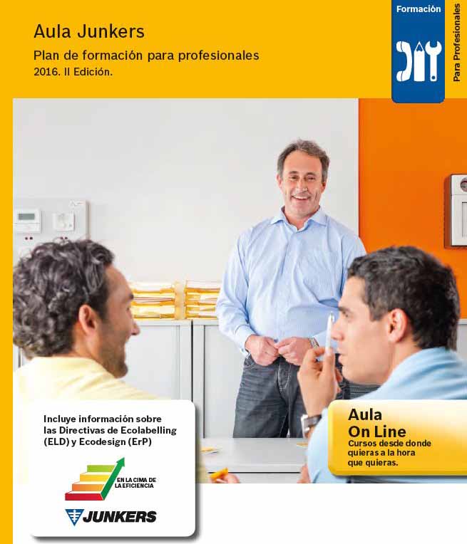 Este Plan será impartido por un grupo de ingenieros de Junkers, ofreciendo a los instaladores diferentes módulos de formación para cada una de sus necesidades, así como una atención personalizada y efectiva. Para el último trimestre del 2016, se han planificado ya de agua caliente sanitaria, calefacción (calderas de condensación), regulación y puesta en marcha en instalaciones térmicas y el nuevo curso de Bombas de calor. Además, los participantes recibirán una introducción de las nuevas directivas europeas de Eficiencia Energética, ELD de EcoEtiquetado-Ecolabelling y ErP de EcoDiseño-Ecodesign, aplicadas ya a todos los productos Junkers desde septiembre de 2015.