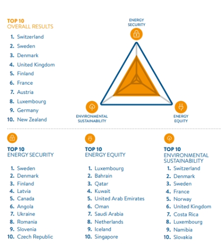 Desde el año 2000 ha habido una tendencia general entre la mayoría de países a mejorar el desempeño de las políticas energéticas. Así lo demuestra el Índice Global energético Trilema de 2019, publicado por el Consejo Mundial de la Energía en asociación con la consultora global Oliver Wyman durante el 24º Congreso Mundial de la Energía en Abu Dhabi. Se trata de un informe que clasifica 125 países conforme a la integración de tres dimensiones fundamentales para alcanzar la sostenibilidad energética: Seguridad energética, Equidad energética y Sostenibilidad ambiental.