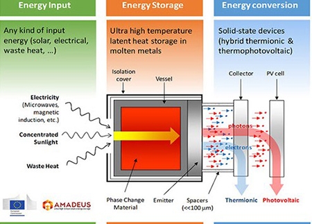 El almacenamiento directo de energía solar en plantas termosolares, o la integración del almacenamiento eléctrico y la cogeneración en domicilios y distritos son sólo algunas de las aplicaciones que podrían tener los nuevos dispositivos resultantes del proyecto Amadeus, que cuenta con financiación de la convocatoria Future Emnerging Technologies (FET) del programa Horizonte 2020 de la Comisión Europea y que está ya en su segundo año de andadura, de los tres inicialmente previstos para su duración.