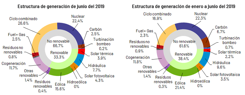Esta realidad ha llevado a los ciclos combinados de gas a situarse entre las tecnologías que más han contribuido a la generación de electricidad en España durante los meses de junio y julio, situándose en muchos momentos como la principal. Según datos de Red Eléctrica, la generación con gas en ciclos combinados en junio supuso nada menos que el 26,6% del total y superó de este modo a todas las tecnologías para alcanzar el primer puesto en porcentaje de generación, seguida por la nuclear (22,4%) y la eólica (15,6%). En el global del año, con datos de enero a junio, los ciclos combinados son la tercera fuente de generación con un 16,9% del total, superados de momento por la nuclear (22,3%) y la eólica (21,4%)