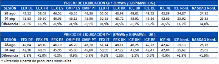 El descenso generalizado de la producción eólica y de la producción solar, en este caso en el sur de Europa, junto con la recuperación de los precios del gas, favorecieron los aumentos de precios de los mercados eléctricos europeos de la semana del 31 de agosto. Otros factores que ayudaron en esta subida fueron la menor disponibilidad nuclear francesa y los precios del CO2, que continuaron con valores superiores a 27 €/t.