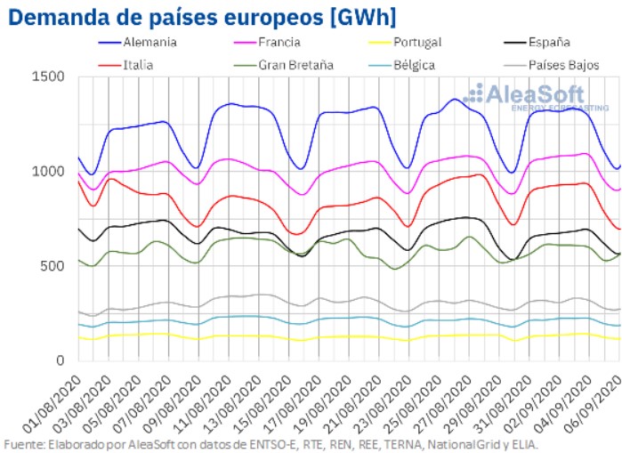 Para la semana del 7 de septiembre, las previsiones de demanda de AleaSoft indican que la demanda descenderá en la mayoría de mercados europeos.