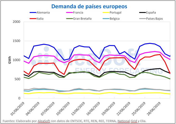 Durante la semana pasada Europa vivió una ola de calor que hizo aumentar las temperaturas medias en todo el continente alrededor de 3 °C respecto a la semana anterior, destacando Francia con un aumento de 5 °C. Esto hizo que la demanda eléctrica aumentara de forma considerable, con España a la cabeza con un crecimiento del 7,7%. Sin embargo, en Gran Bretaña la demanda eléctrica bajó en este período un 0,8%.