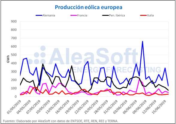 La producción eólica tuvo una bajada generalizada en los países europeos la semana pasada. En Alemania fue de un 29%, en Francia de un 39%, en España de un 28%, en Portugal de un 23% y en Italia de un 18%. Para esta semana se espera que la producción eólica europea continúe disminuyendo.