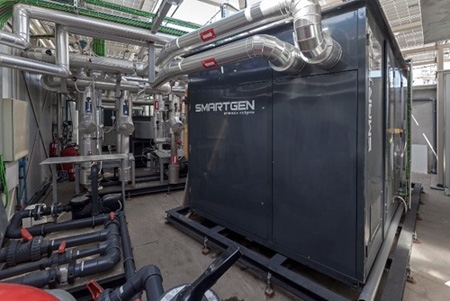 Adicionalmente se ha instalado un equipo de microcogeneración de alta eficiencia Altare Smartblock 50 que produce de forma simultánea 50 kW eléctricos para autoconsumo y 100 kW térmicos para la demanda térmica base del hotel. Un equipo instalado en un espacio cerrado y compacto de 12m2, que está controlado y monitorizado por el sistema EXEON que asegura una operación eficiente y fiable.