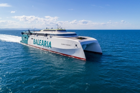 El Eleanor Roosevelt es el primer fast ferry del mundo con motores a gas natural, que acaba de estrenar Baleària y que habitualmente opera en la ruta Denia-Ibiza-Palma. Éste es el buque insignia que ejemplifica la apuesta de la compañía por la sostenibilidad y la innovación. Baleària es pionera en el uso del gas natural y ha invertido 380 millones de euros en una flota de nueve ferries a gas natural, un combustible que reduce las emisiones a la atmósfera.