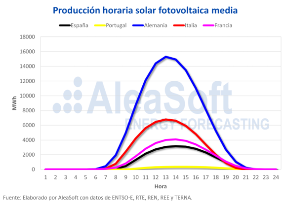 Comparando los primeros días del presente año respecto al mismo período de 2019, la producción solar se incrementó en todos los países. En lo que va de mes sobresalen los aumentos de un 81%, 16% y 11% de Alemania, Italia y la península ibérica.