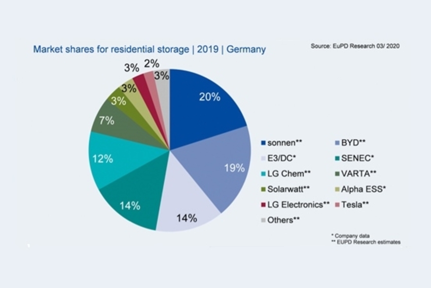 A pesar del creciente número de proveedores en el mercado, las primeras posiciones han sido dominadas por los mismos proveedores en los últimos años. El fabircante bávaro Sonnen lidera el ranking, seguido por la china BYD. Los alemanaes E3/DCy el fabricante Senec ocupan el tercer lugar con una cuota de mercado del 14% respectivamente. El fabricante coreano LG Chem completa los 5 primeros puestos.