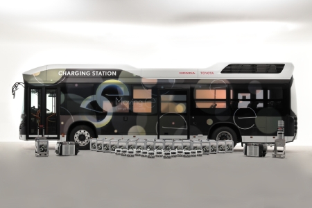 Toyota Motor Corporation (Toyota) y Honda desarrollarán un generador de electricidad portátil, denominado ‘Moving e’, consistente en un autobús de pila de combustible de hidrógeno que puede transportar una gran cantidad de hidrogeno, generadores eléctricos y baterías portátiles para poder ofrecer electricidad en cualquier momento y lugar.