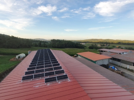 Así ha sucedido con la Ganadería Ramos, en A Coruña, una explotación agropecuaria de vacuno de leche comprometida con la innovación y la eficiencia energética, que ha encontrado en la energía fotovoltaica una aliada perfecta para aumentar su rentabilidad. Y es que los 31,2 kWp de energía verde instalados en la cubierta de la nave proporcionan la electricidad suficiente para ahorrar una cuantía considerable al año y, además, evitar la emisión de 12 toneladas de CO2 a la atmósfera.