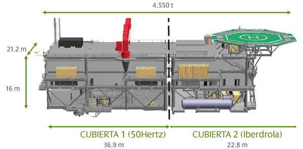 Se trata de una gran obra de ingeniería diseñada por Iberdrola para resistir las condiciones extremas climatológicas que tendrá que soportar y está formada por dos secciones, o superestructuras, que serán utilizadas por Iberdrola y 50Hertz, operador del sistema eléctrico en esa parte de Alemania. Es de destacar que unos 700 empleados han trabajado en este proyecto y que, gracias a esta iniciativa, Navantia ha entrado en un negocio de futuro como el de la energía eólica marina.
