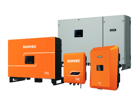 La gama de inversores Sunvec para el sector doméstico y residencial cubre las potencias de 3kW a 15kW, con control de hasta 3 strings, 2MPPT y salida monofásica 230V o trifásica 400V, según modelo. Para el sector comercial, industrial y de grandes instalaciones, Sunvec presenta equipos de 20KW a 50kW de potencia, con control de hasta 12 strings, 4 MPPT con salida trifásica 400V y opciones de combinación para conseguir potencias más elevadas. En todas las gamas, los inversores ofrecen una alta eficiencia de rendimiento con un amplio rango de tensión de trabajo.