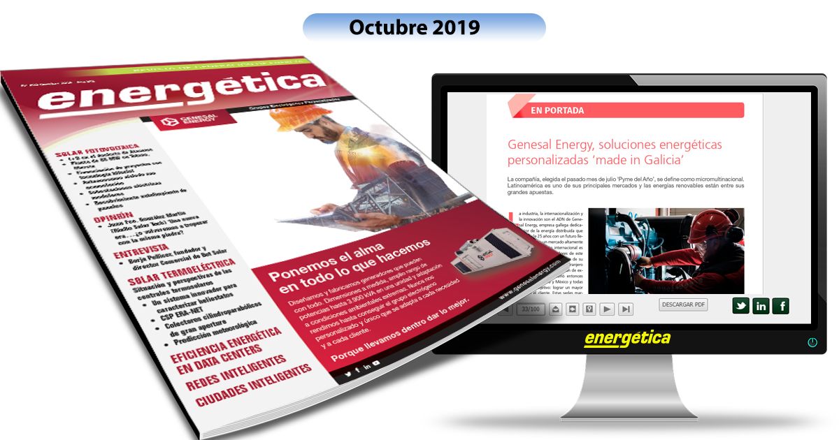 La edición de octubre de la revista Energética ya puede consultarse de forma gratuita tanto en e-book (ver aquí) como en pdf (descargar aquí). El nuevo número de dedica un amplio especial a solar fotovoltaica con motivo de la celebración del VI Foro Solar Español en Madrid los próximos 22 y 23 de octubre.
