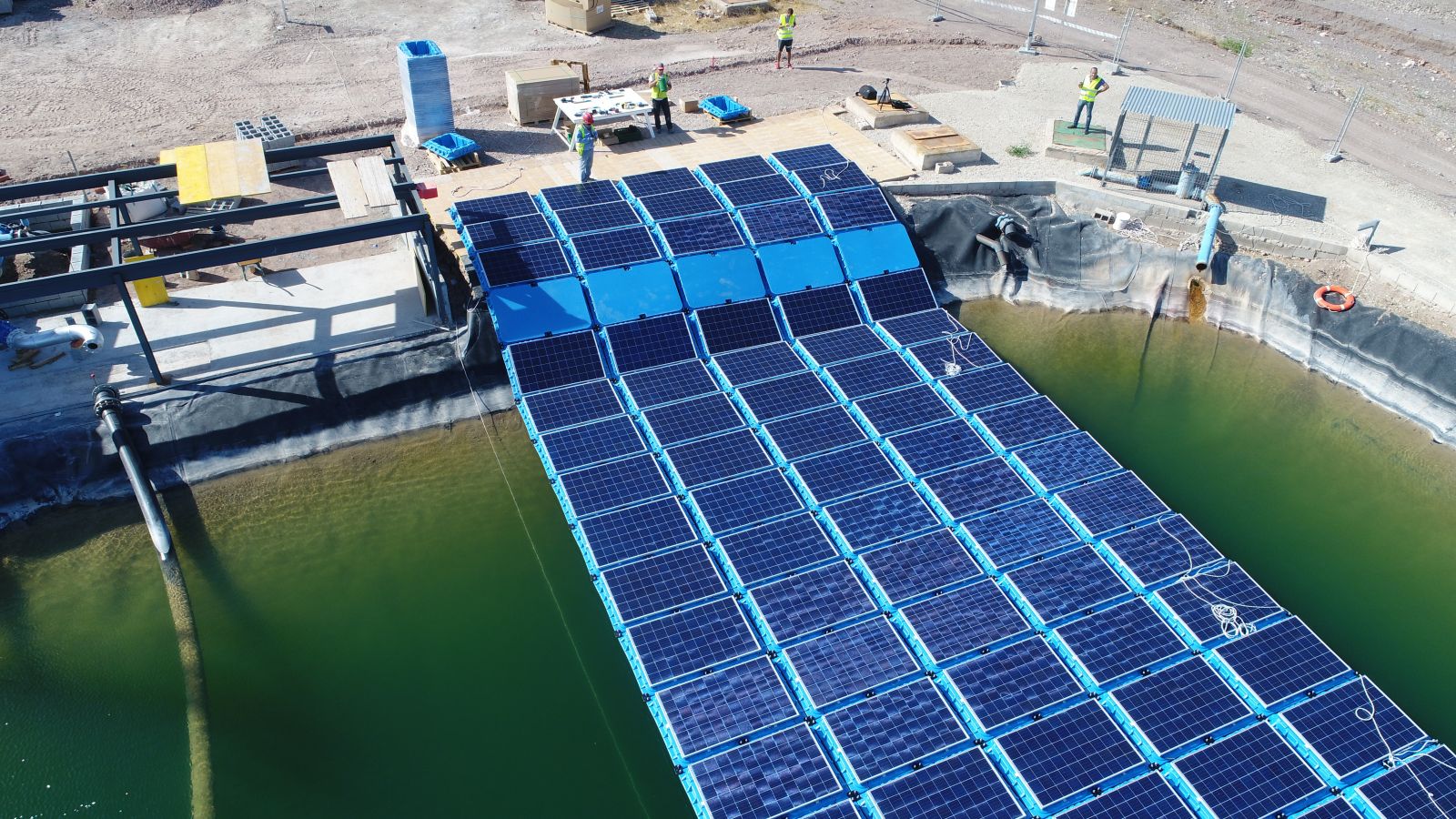 Además, todos somos conscientes del creciente grado de perfeccionamiento y madurez del sector de las energías renovables que está redundando en una progresiva reducción de los costes de generación. Por ello, las soluciones flotantes solares deben alinearse con tales principios a lo largo de toda la cadena de valor. En la fase de diseño y manufactura deben utilizarse los medios técnicos y materiales, capacidades de producción y calidad de mayor rendimiento y fiabilidad que optimicen el posterior transporte, logística y acopio para facilitar al máximo la posterior instalación. El montaje en las zonas próximas al contorno del agua debe respetar al máximo el medio físico existente; es muy normal encontrase con limitaciones de área de ocupación y condiciones del terreno natural que no pueden verse afectadas. Por todo ello, la solución flotante debe poder instalarse con medios mecánicos y materiales muy sencillos y básicos que igualmente aseguren altos rendimientos de montaje (> 1 kW/h operario) y finalmente, tras la entrada en producción de la planta, también puedan utilizarse a lo largo de su vida útil.
