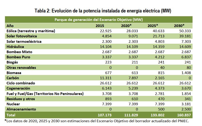 Se prevé un muy considerable incremento de la potencia instalada en energía renovable, fundamentalmente a través de la energía solar fotovoltaica, que cuadruplicará su nivel de generación. También se espera conseguir un incremento en solar termoeléctrica y eólica, tanto terrestre como marina, que duplicarán o triplicarán su generación.