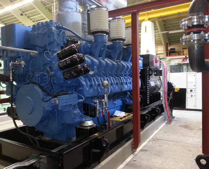 Los grupos electrógenos están conectados en paralelo con la red. Se trata, por tanto de dos generadores de media tensión de 3030 kVA a 6.6 kV de tensión, con motor MTU, que generan 2.5MW cada uno de ellos y se activan a los 12 segundos de producirse cualquier corte eléctrico. La rápida respuesta, permite dar un soporte de energía de emergencia garantizando continuidad en la actividad industrial, principalmente pesquera, de las islas y evitar cualquier corte de luz en el área residencial de las islas.