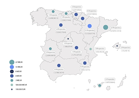Por comunidades de origen, Cataluña (27) acoge el mayor número de propuestas seleccionadas, junto con Aragón (11) y Andalucía (9). Dada la naturaleza de la convocatoria y su vinculación directa con la actividad del sector primario, los criterios de selección de los proyectos han ponderado, además de su rigor técnico y grado de innovación, la ubicación en zonas de Transición Justa y Reto Demográfico. Del total de las ayudas propuestas, más de la mitad, 42,1 millones, se conceden a iniciativas localizadas en estos territorios.