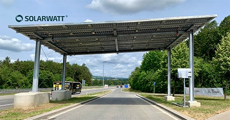 Se trata de un techo solar de 12x14 metros que se ha ubicado a una altura de aproximadamente 5‘5 metros sobre el carril de paso del área de descanso de Hegau-Ost Ost en la autopista A81 en Baden-Württemberg (Alemania). En el prototipo se han instalado módulos vidrio-vidrio Vision Construct de Solarwatt, unos paneles que cuentan con la aprobación general de la autoridad de construcción del Instituto Alemán de Tecnología de la Construcción.