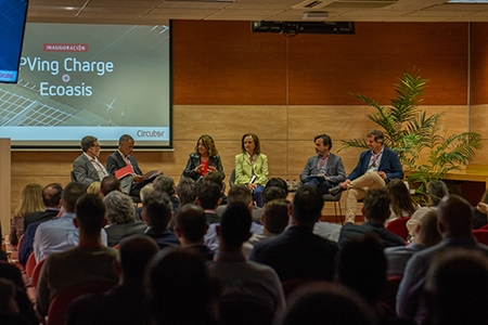 Circutor ha presentado PVing Charge y Ecoasis, dos proyectos de Circutor para hacer frente a los problemas de recarga de vehículo eléctrico. Más de 100 personas han asistido a la ceremonia inaugural de estas dos innovadoras instalaciones en la sede de Circutor de Viladecavalls.