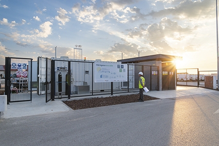 El hidrógeno renovable producido tendrá dos usos: Por un lado, lo almacenarán a 35 barg de presión para ser comprimido a través de un compresor de pistón desde los 35 barg hasta los 500 barg. El hidrógeno comprimido será almacenado en botellas de alta presión para ser dispensado a una carretilla elevadora de almacén de 5 toneladas. Carretilla que funciona con una pila de combustible y está accionada por un motor eléctrico.