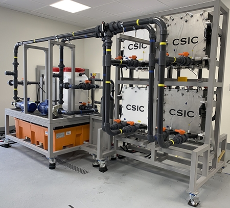 Un equipo de investigadores del CSIC ha desarrollado un prototipo de batería de flujo redox de vanadio de 10 kW para demostrar su viabilidad como sistema de almacenamiento de energía eléctrica a gran escala, dirigido especialmente a las energías renovables. Este prototipo de 10 kW (10 kW de potencia y 20 kWh de energía) permite acumular energía eléctrica para aplicaciones estacionarias, como el almacenamiento de energía en viviendas o pequeños comercio.
