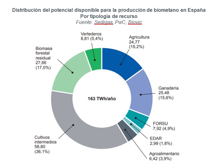 El análisis supone una actualización de las últimas cifras calculadas en 2018 por el Instituto de Diversificación y Ahorro de la Energía (IDAE), que situaban el potencial disponible de biometano entre los 20 y 34 TWh anuales en el año 2030, lo que podría suponer entre un 5% y un 9% de la demanda anual gas. El origen de esta diferencia radica en que los datos del IDAE no incluían los cultivos intermedios, así como los residuos forestales y otros biológicos de más difícil aprovechamiento, pero con un gran potencial, que ahora sí han sido considerados.