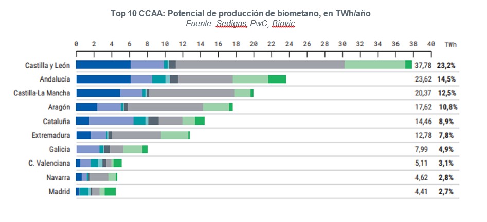 Castilla y León, Andalucía y Castilla-La Mancha acaparan la mitad del potencial total