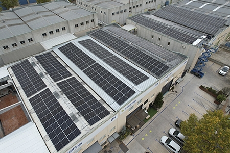 El proyecto de autoconsumo energético de Neftis Laboratorios consiste en una instalación solar fotovoltaica de una potencia total de 407,56 kWp. Esta instalación está conectada a través de red.