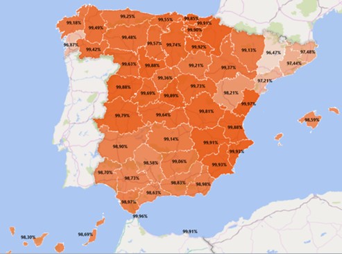 Aunque el grado de cumplimiento es muy elevado, no se ha logrado alcanzar el 98% de sustitución en todas las provincias. Tanto Pontevedra como las cuatro provincias catalanas no han alcanzado dichos porcentajes, como se observa en el siguiente mapa: