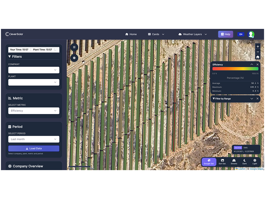 Al centralizar estos datos en un entorno geográfico, Clever Solar facilita una toma de decisiones mucho más rápida y precisa, permitiendo a los operadores detectar problemas complejos de un solo vistazo.