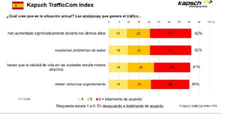 El 80 por ciento de los ciudadanos españoles quiere reducir urgentemente las emisiones del tráfico rodado. El 82 por ciento culpa al ruido, la contaminación atmosférica y otras cargas por los efectos sobre la salud, según los resultados de la encuesta "Kapsch TrafficCom Index 2020". Nuevos conceptos como el de ‘ciudad de 15 minutos’, que ya se han puesto en marcha en algunas ciudades europeas como París, marcan el camino para conseguir un aire más limpio y menos tráfico en el momento post-covid. Sin embargo, la calidad del aire todavía debe mejorar más por lo que es necesaria una gestión holística del tráfico.