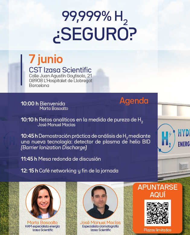 Para presentar las distintas soluciones que ofrece en el ámbito del hidrógeno verde, la empresa Izasa Scientific organiza un seminario teórico-práctico el próximo 7 de junio en sus instalaciones de L´Hospitalet de Llobregat (calle Juan Agustín Goitysolo, 21)