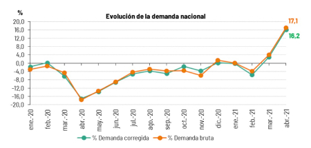 En los cuatro primeros meses de 2021, la demanda se estima en 85.760 GWh, un 3,6 % más que en 2020. De nuevo, una vez corregida la influencia del calendario y las temperaturas, la demanda es un 2,8 % superior a la registrada en el mismo periodo del año anterior.