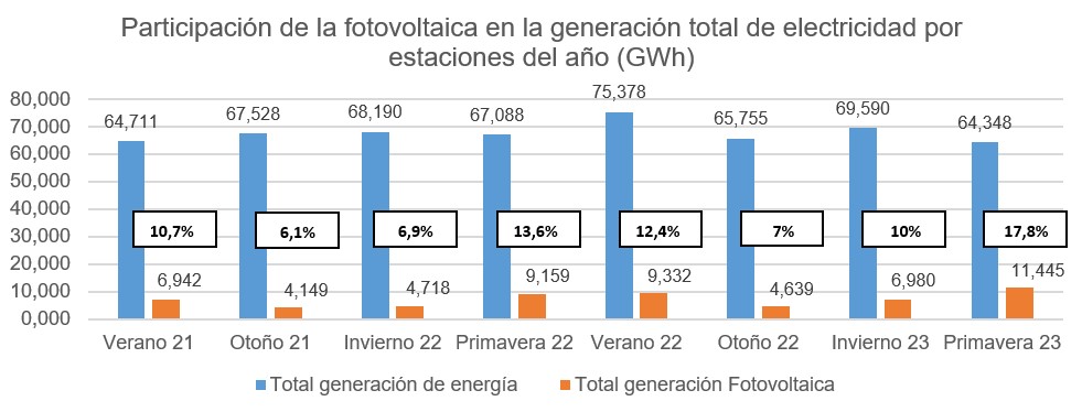 Con la información extraída de Red Eléctrica Española y elaborada por Esasolar se constata el crecimiento de la fotovoltaica durante todas las estaciones del año, con datos tan espectaculares como que durante el último invierno (enero-marzo de 2023) el 10 % de la electricidad producida en España tuvo su origen en la energía solar fotovoltaica, muy por encima del 7 % que supuso el invierno pasado. Para Iglesias, “esto nos ha de hacer romper el mito de que la fotovoltaica es una energía sólo para el verano”.