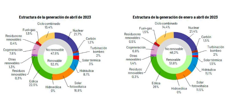 Las renovables generaron en abril el 52,1% de la electricidad en España