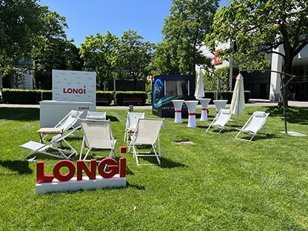 LONGi Solar inicia la edición de este año de Intersolar con el lema "Leading into Infinity" en el recinto A2, stand 170. El lema pretende reflejar los logros de LONGi en I+D, tanto en tecnologías solares como de hidrógeno. En fotovoltaica, el primer principio de la empresa es esforzarse constantemente por mejorar la eficiencia de las células. Por ello, en Intersolar, LONGi expondrá innovaciones en módulos basadas en la tecnología de contacto posterior, lo que subraya su firme convicción de que la tecnología BC será la tecnología solar del futuro próximo debido a su potencial de mejora de la eficiencia.