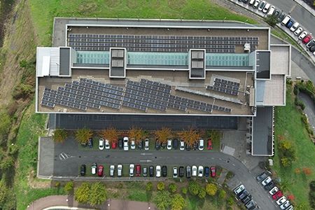La cubierta del edificio tiene una superficie total de 1.700 metros cuadrados y se ha utilizado prácticamente toda la superficie para el montaje de las placas solares. En total, han sido 263 paneles, de 455 W de potencia cada una, con las que la Escuela Politécnica de Mondragon Unibertsitatea autoabastecerá las necesidades energéticas del propio campus. En el proceso de estudio e implantación de las placas han participado tanto los técnicos del equipo de Gestión de Edificios y del equipo de Medioambiente de la Escuela Politécnica, así como algunos miembros del grupo de investigación de Energía Eléctrica. Esta colaboración entre distintos perfiles ha permitido parametrizar la instalación de tal manera que permitirá a medio y largo plazo usar los datos de generación y consumo para la modelización, control y creación de equipos inteligentes de los edificios del futuro.
