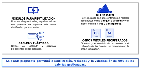 La nueva instalación contará con la última tecnología a escala industrial gracias a un programa de I+D que ha permitido implantar mejoras en las diferentes soluciones de extracción, diagnóstico, descarga y reciclaje de los componentes de las baterías.
