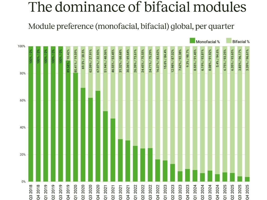 En términos tecnológicos, los módulos bifaciales ya dominan más del 90% de los proyectos simulados, mientras que los inversores string superan el 60%, reflejando su papel en diseños modulares adaptados a requisitos de red. Los proyectos híbridos solar más almacenamiento han pasado del 12% de las simulaciones en 2024 al 20% en el cuarto trimestre de 2025, con BESS acoplados en AC en el 83% de los casos. La funcionalidad de BESS independiente, incorporada a la plataforma hace algo más de un año, representa ya el 3% del total de simulaciones, indicando un interés creciente por activos no co-localizados.