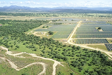 Valdesolar está compuesta en su totalidad por 648.000 módulos solares, repartidos en cinco grandes áreas, y se conecta a la red mediante una nueva subestación eléctrica de 400 kV que también forma parte del proyecto.