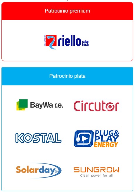 Ponentes y patrocinadores. En su nueva edición, el webinar contará con el apoyo de empresas de reconocido prestigio, que ya han confirmado su presencia como ponentes y patrocinadores en el evento, entre ellas, ââ??¶Riello Solartech, ââ??¶Baywa r.e., ââ??¶Circutor, ââ??¶Kostal, ââ??¶Plug and Play Energy, ââ??¶Solarday y ââ??¶Sungrow.